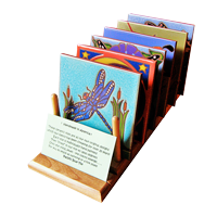 $49.95We live on 5 acres with a large pond with an island in it. Every summer there are hundreds of iridescent dragonflies that swoop down to the pond and land on the cattails. I would just go right up to them and take a good look at their most magnificent intricately webbed wings. I feel I have captured their elegance and translucent color scheme in this tile design, one of my favorites.